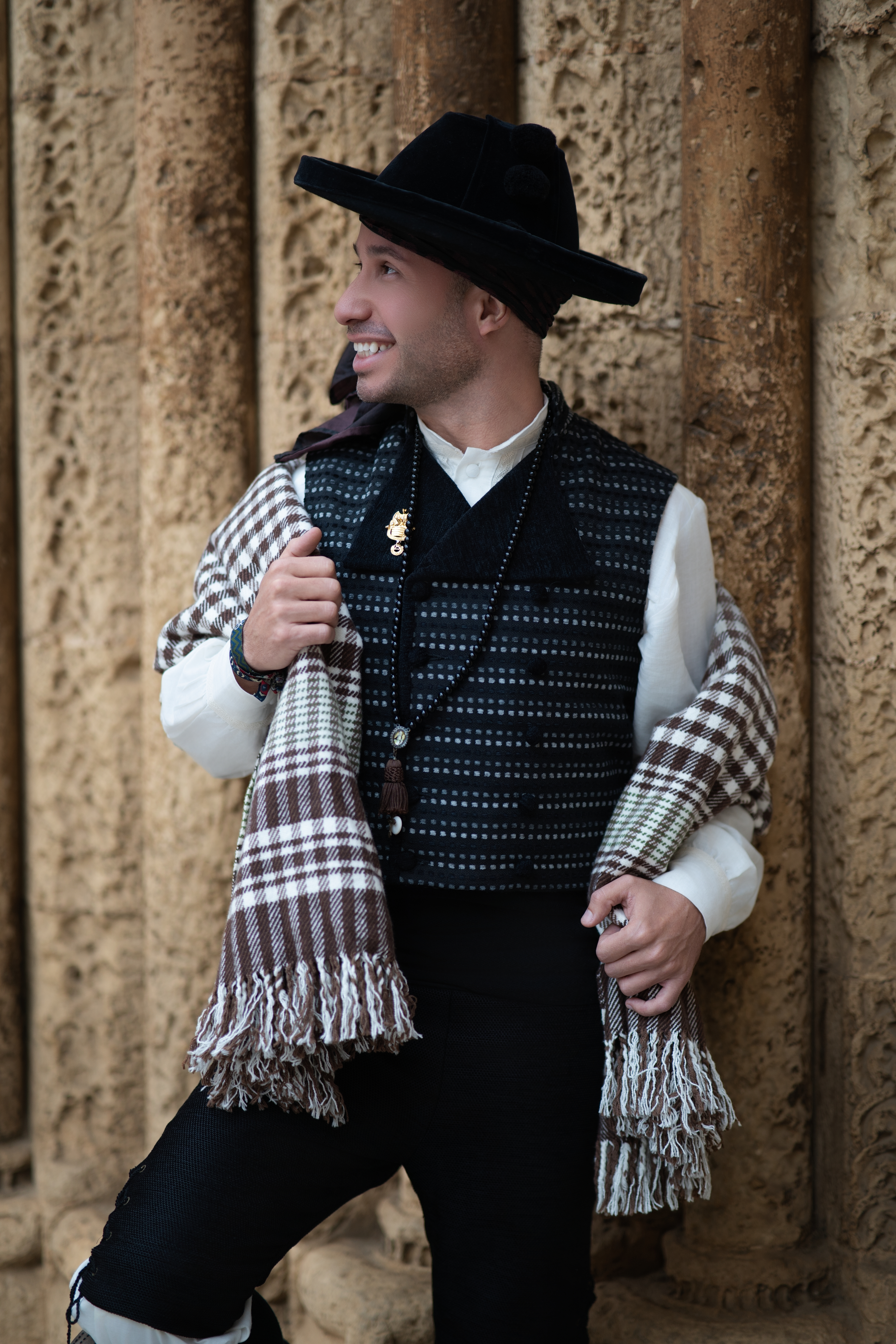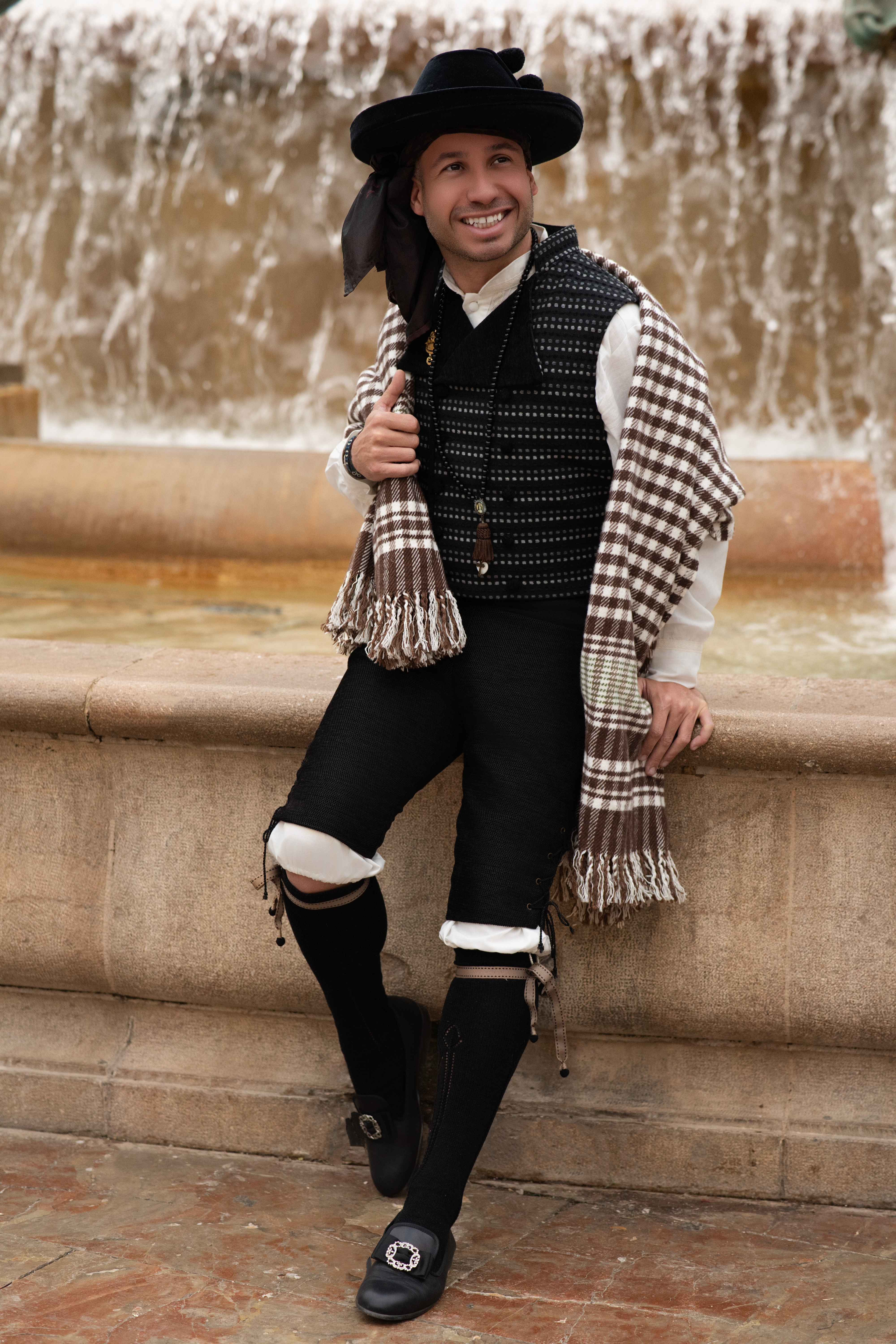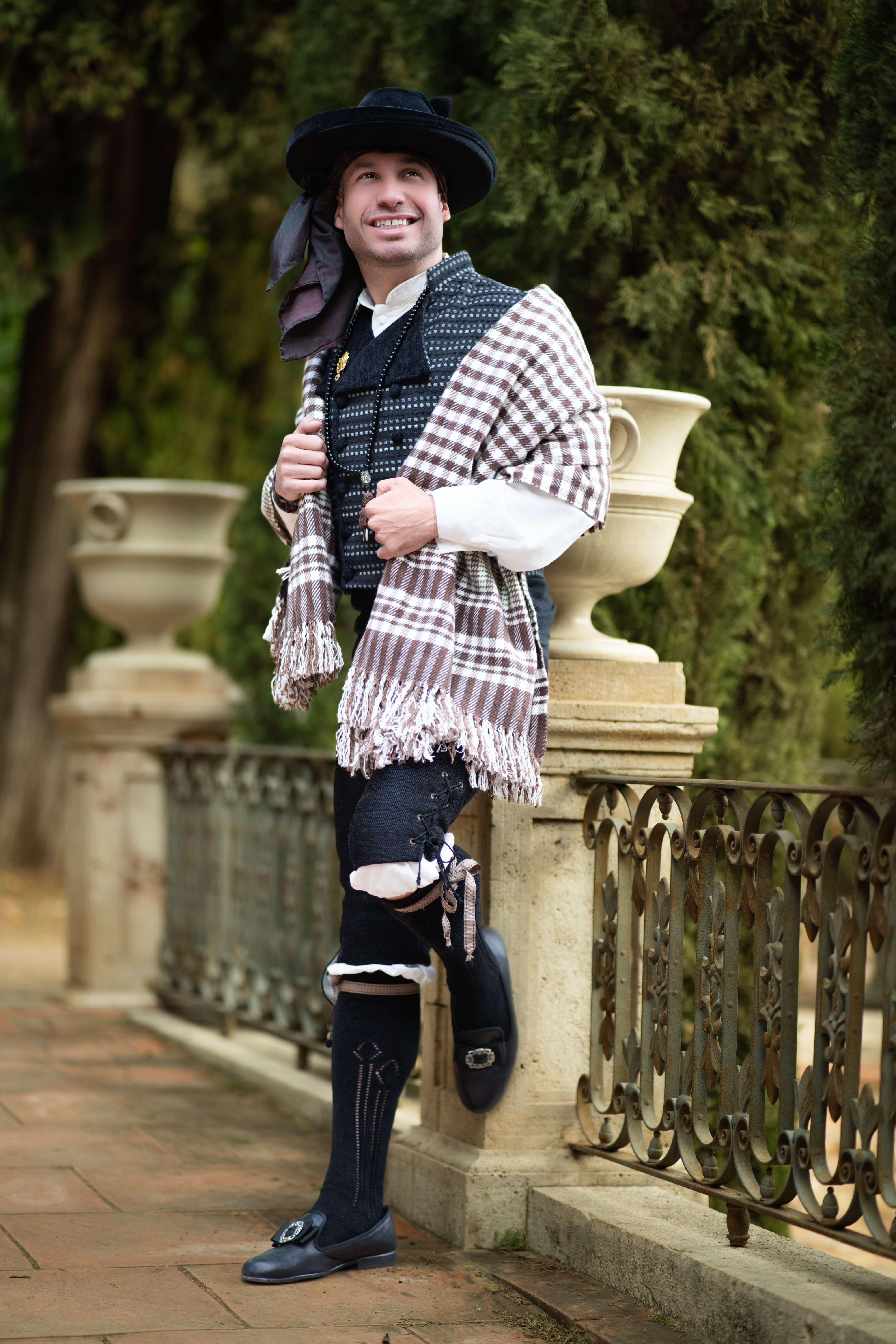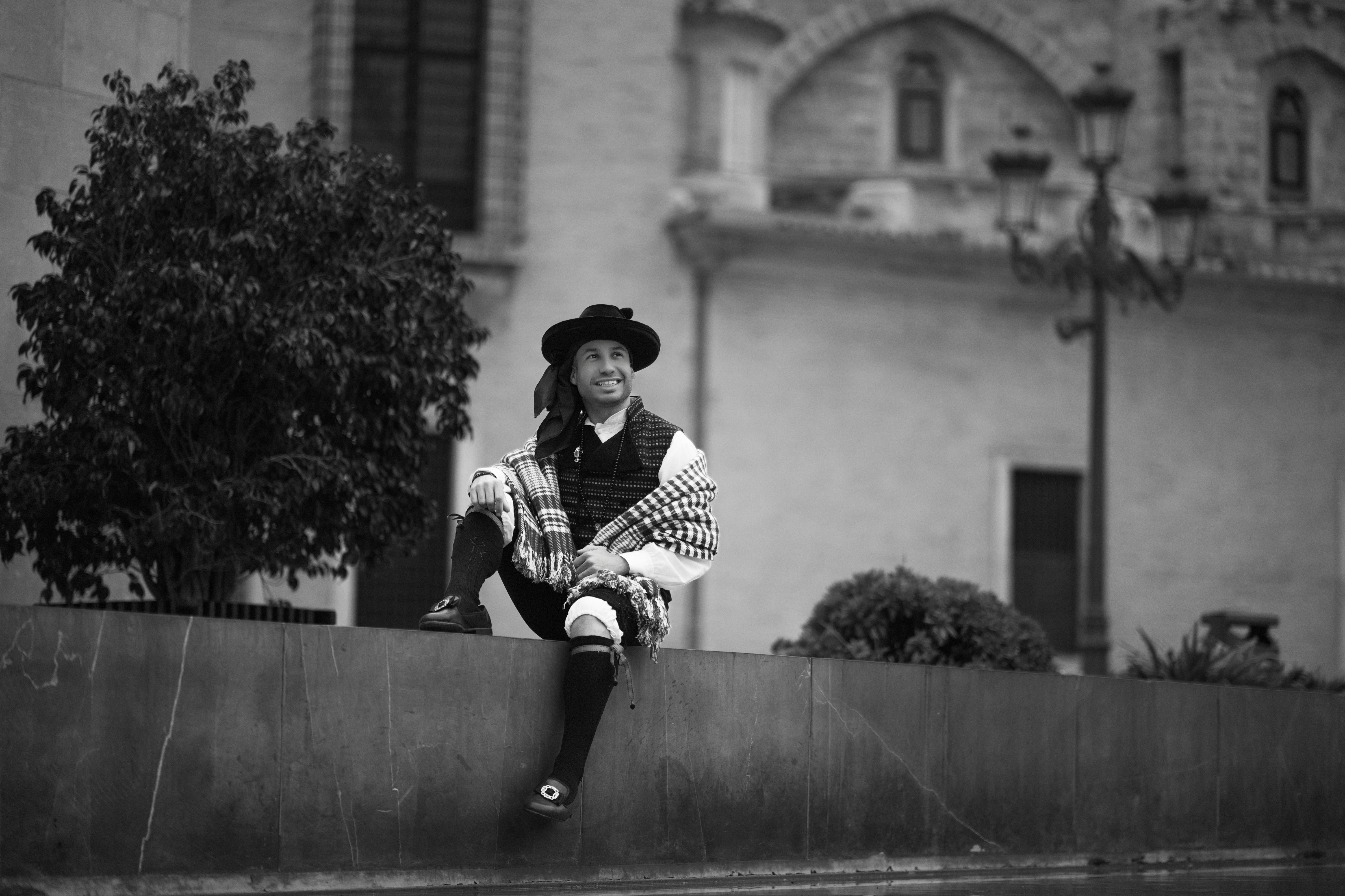 Sesión de fotos de Presidente de la Falla Polo y Peyrolon, del ejercicio 2025. Realizada en el centro de Valenciay en los Jardines de Monforte, toda la sesión se realizó en exteriores.
